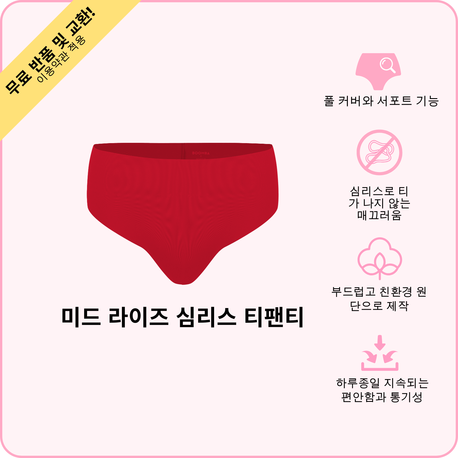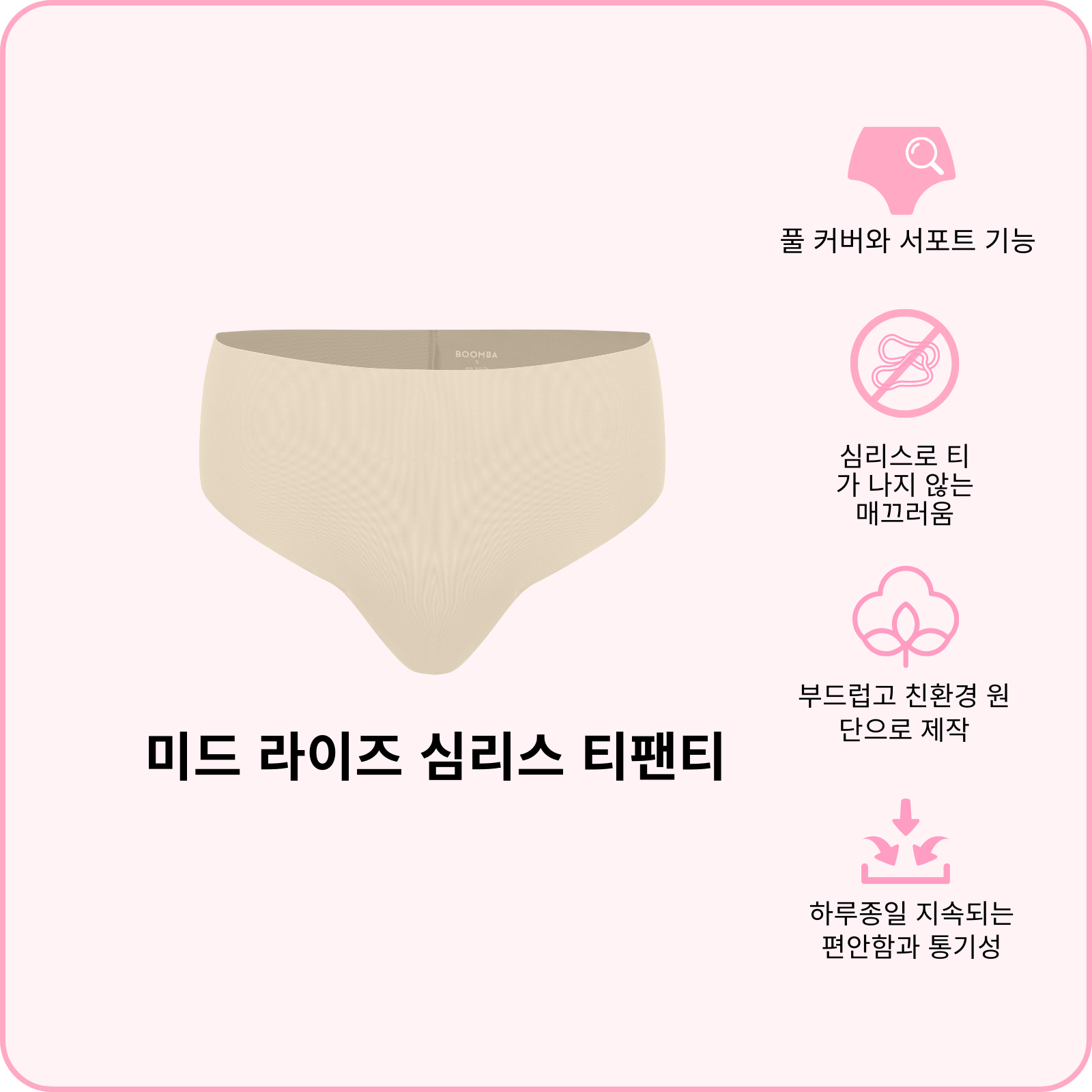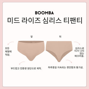 BOOMBA 미드 라이즈 심리스 티팬티를 소개합니다. 피부 같은 느낌을 주는데 아주 예쁘기도 해요! 부드럽고 매끈한 원단으로 제작된 이 아이템은 하루종일 편안한 착용감을 주며 옷을 입었을 때 티가 나지 않습니다. 미드 라이즈 핏은 커버력과 스타일의 조화를 이루며 매일 착용하기에 좋아요.