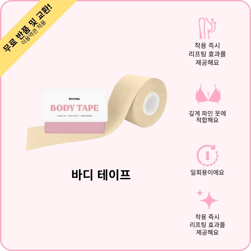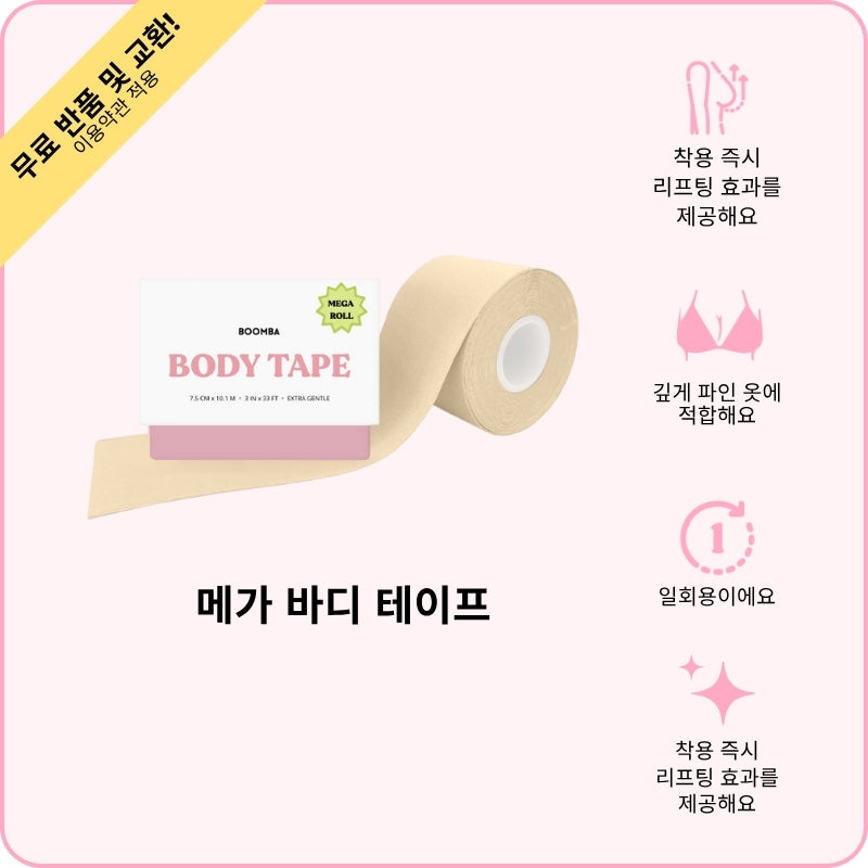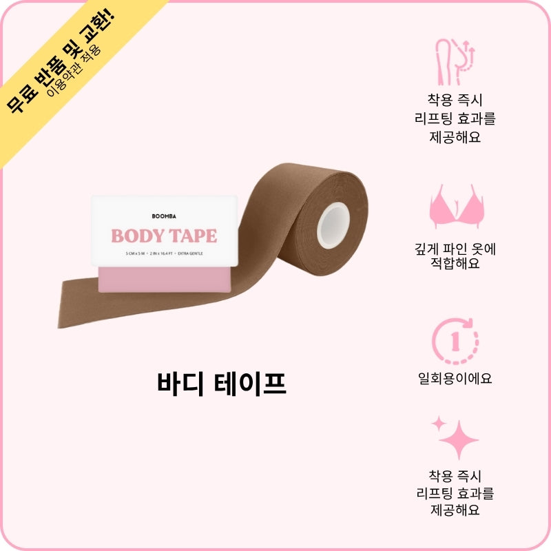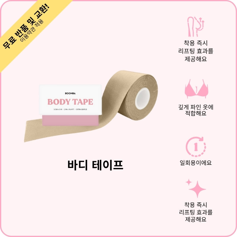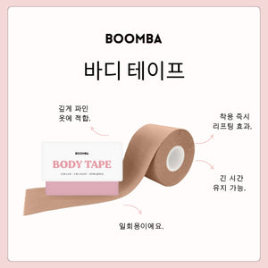 BOOMBA의 바디 테이프는 다양한 방법으로 사용할 수 있습니다. 체형에 맞게 디자인되었으며 부드러우면서도 강력하여 최대 12시간의 지속력을 가지고 있습니다.