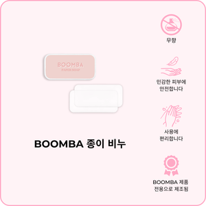 - 무향: BOOMBA 종이 비누는 저자극성 제품이며 민감한 피부에 안전한지 확인하기 위해 향이 첨가되지 않았습니다.