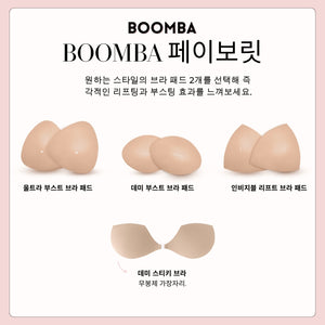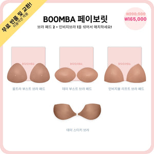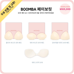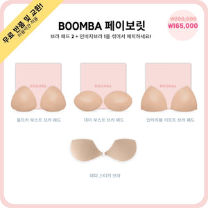 이 번들에는 BOOMBA 인비지브라가 포함되어 있으며 BOOMBA 베스트셀러 브라 패드 중 원하는 제품 2개를 선택할 수 있습니다. BOOMBA의 페이보릿 번들로 선택된만큼 해당 번들은 모든 경우를 만족시켜 줄 필수 제품들로 구성되어 있습니다.