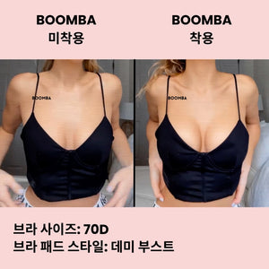 가슴 크기와 모양에 따라 결과가 달라질 수 있습니다. 더블 푸시업 브라를 했을 때의 결과와 유사합니다. BOOMBA의 브라 패드는 자연스러운 가슴에 가장 잘 맞습니다.