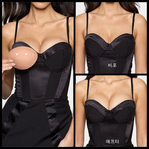 가슴을 모아 올려주며 가슴골을 만들어지도록 조정하세요