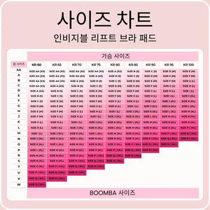 참고: 2024년 8월 15일부터 인비지블 리프트 브라 패드 사이즈가 업데이트되었습니다. 정확한 피팅을 위해 새로운 사이즈 가이드를 참조하세요.