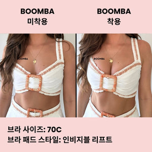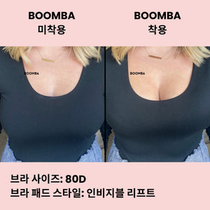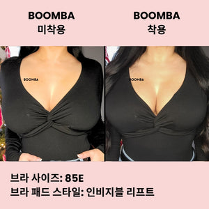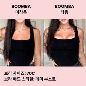 가슴 크기와 모양에 따라 결과가 달라질 수 있습니다. 더블 푸시업 브라를 했을 때의 결과와 유사합니다. BOOMBA의 브라 패드는 자연스러운 가슴에 가장 잘 맞습니다.