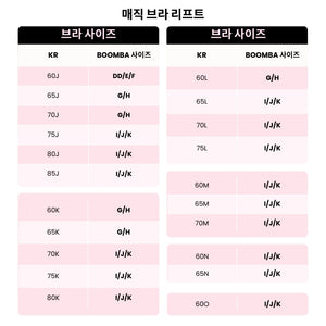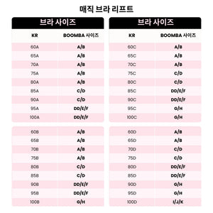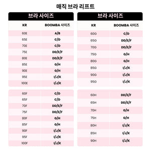 여러분의 밑가슴과 윗가슴 둘레를 입력하고 BOOMBA 사이즈를 찾아 보세요!