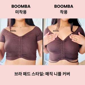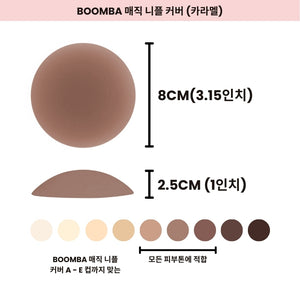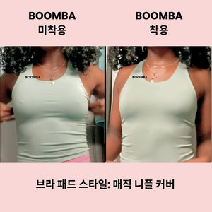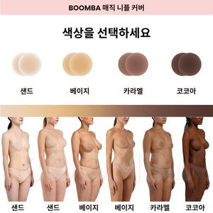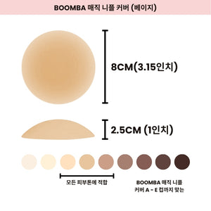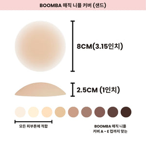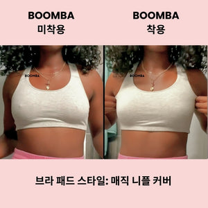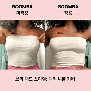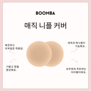 노출에 보다 안정감을 느끼고 싶으신가요? BOOMBA는 접착제가 얇게 도포된 매직 니플 커버(접착형)도 제공합니다. BOOMBA의 매직 니플 커버는 세척이 가능하고 재사용할 수 있어 여러 번 사용이 가능합니다.