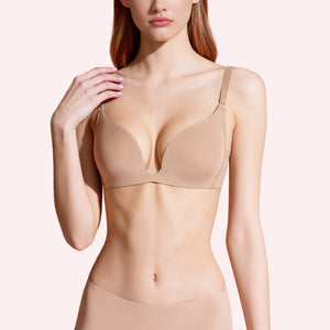 시선을 사로잡는 가슴골을 위한 준비 되셨나요? 넥라인 아래 전혀 보이지 않으면서도 놀라운 볼륨감과 가슴골을 만들어주는 완벽한 플런지 패드 브라를 만나보세요. 자연스러운 볼륨감을 살려주는 몰드 컵과 앞면 중앙 디자인으로, 깊게 파인 파티 드레스부터V넥 블라우스까지 어떤 스타일에도 잘 어울립니다.