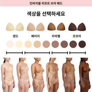 인비지블 리프트 브라 패드 : 얇은 패드로 제작되어, 깊게 파인 옷이나 삼각형 모양의 비키니에 가슴 사이즈는 크게 하지 않으면서 리프팅 효과를 줄 수 있도록 디자인 되었습니다