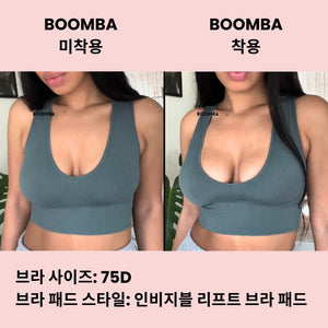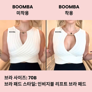 가슴 크기와 모양에 따라 결과가 달라질 수 있습니다. 더블 푸시업 브라를 했을 때의 결과와 유사합니다. BOOMBA의 브라 패드는 자연스러운 가슴에 가장 잘 맞습니다.