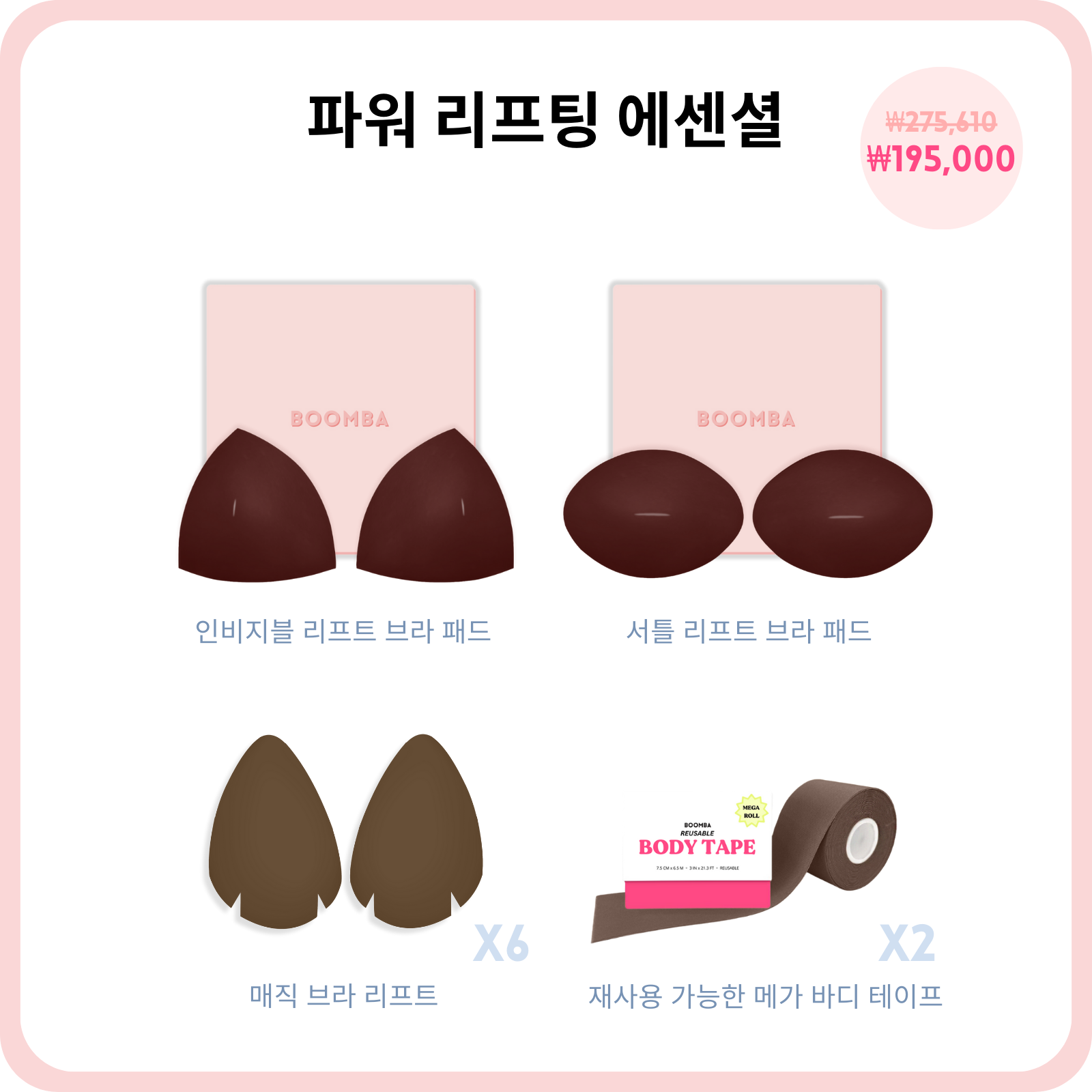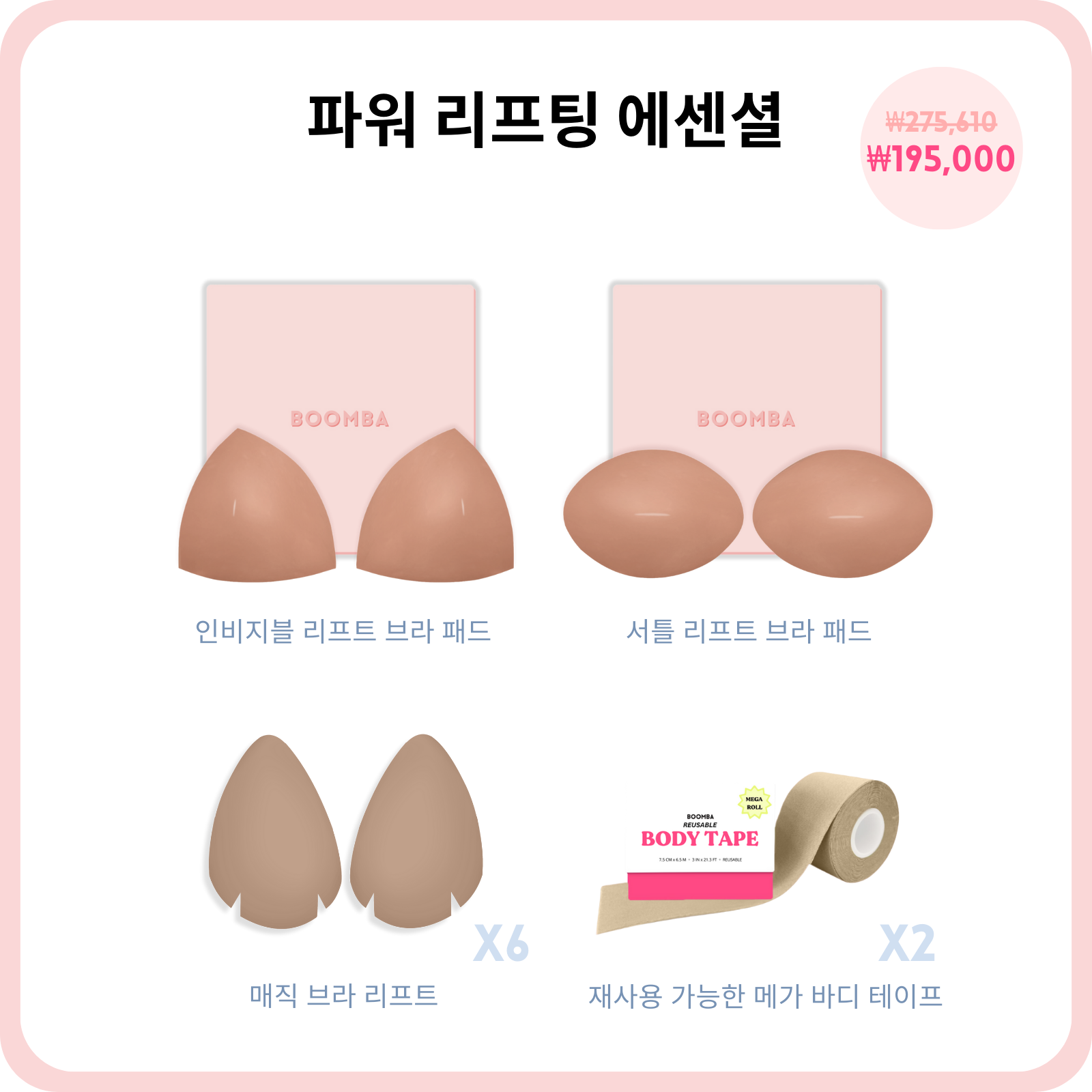 데미 부스트 (라이트) 브라 패드: 가슴 사이즈를 1컵 크게 해주며, 가슴을 약간 더 커보이게 하는 효과에 완벽합니다