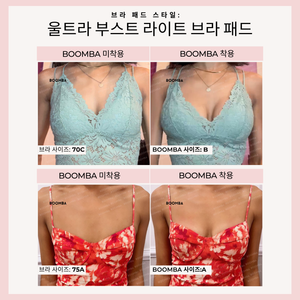 BOOMBA는 제품을 만드는 데 최고의 재료를 사용하고 편안한 착용감을 보장하기 위해 디자인에 모든 정성을 쏟았습니다. BOOMBA 제품을 착용하시면 좋은 브라의 차이를 확실히 느끼실 수 있을 것입니다.