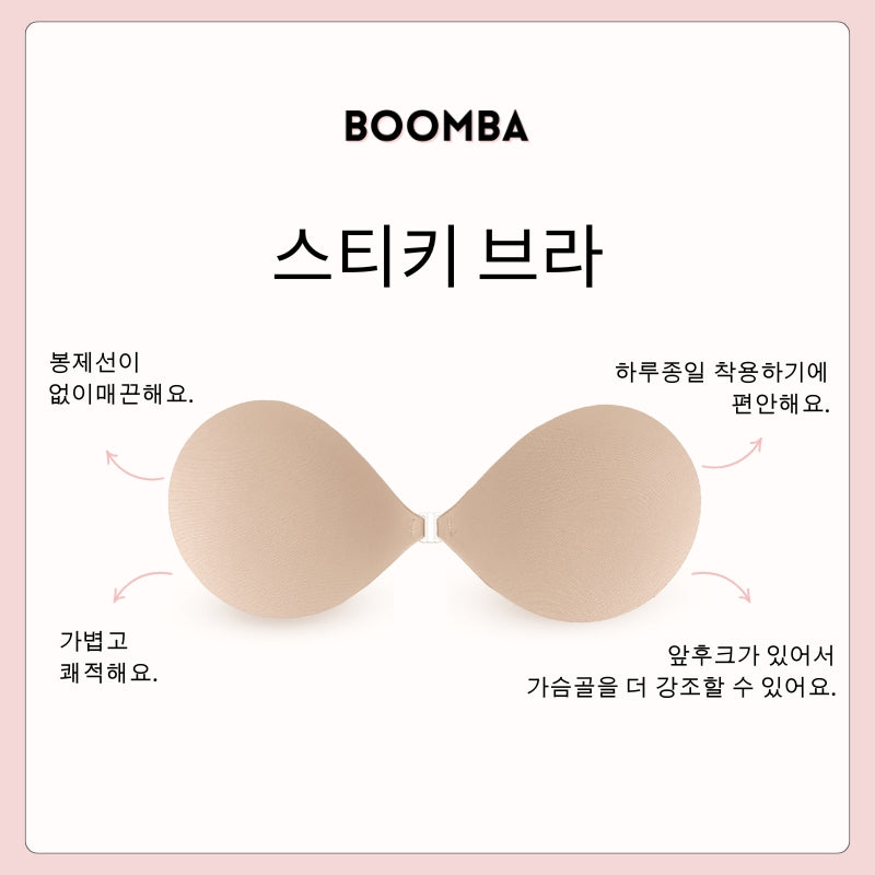BOOMBA 스티키 브라는 올 여름 없어서는 안될 필수 아이템입니다! 와이어나 브라끈, 니플 노출 없이 놀라운 커버력과 편안함을 만나보세요.