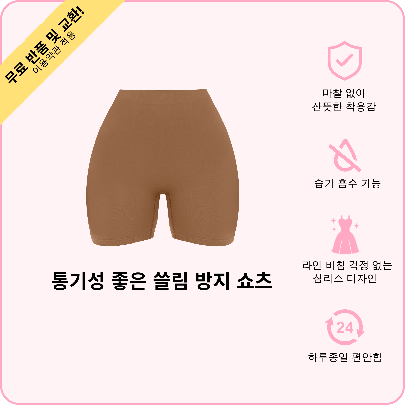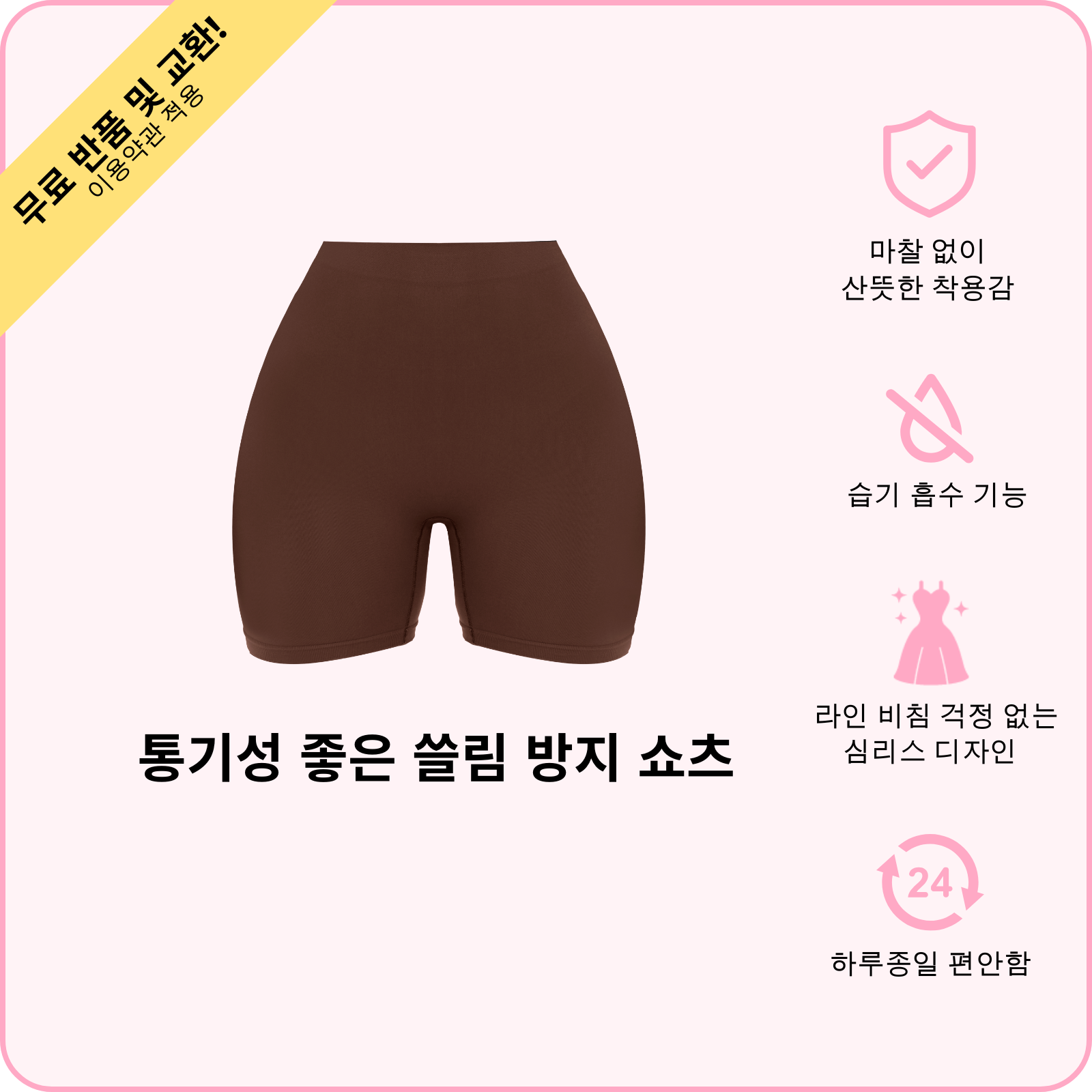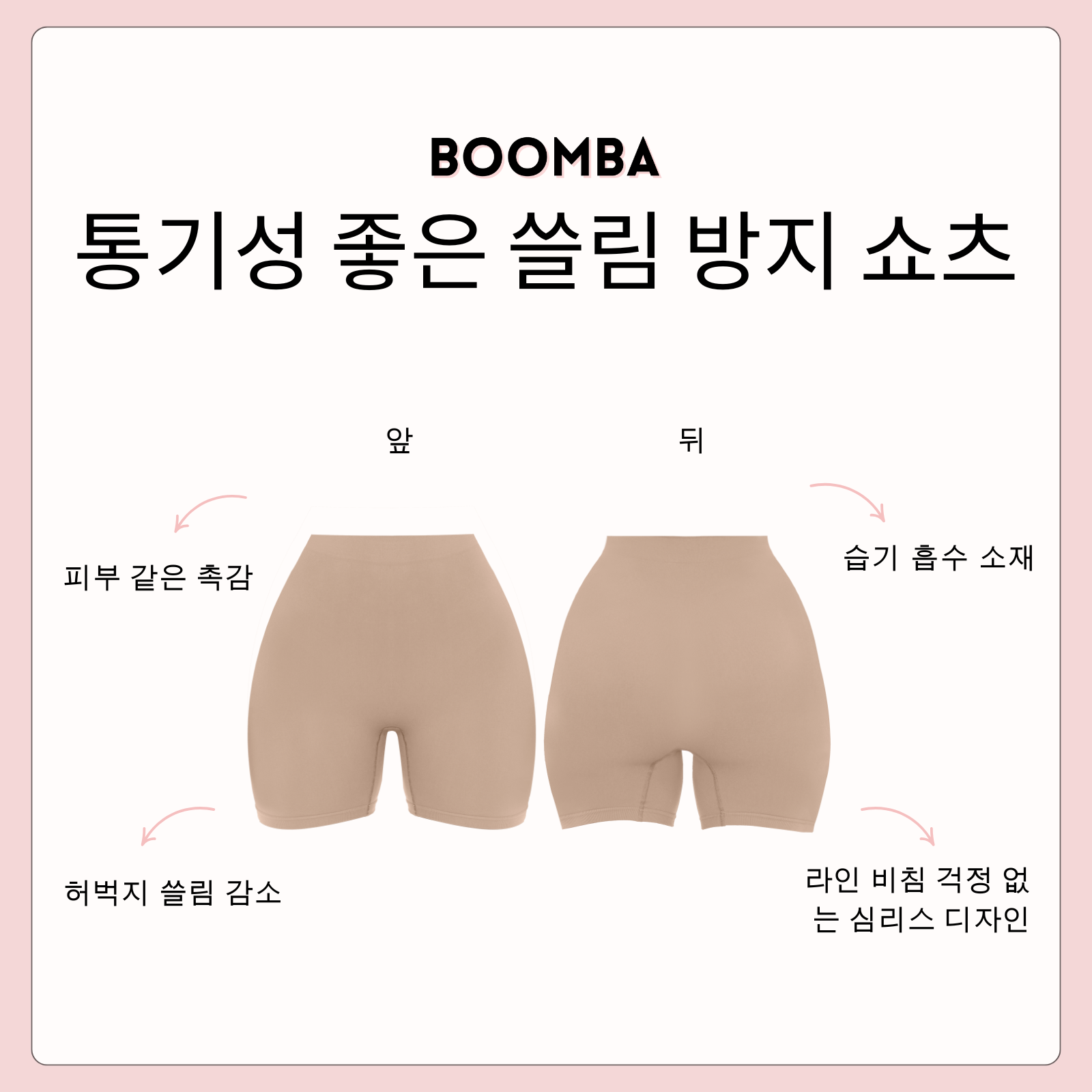 허벅지가 쓸렸나요? 더 이상 걱정하지 마세요. BOOMBA의 통기성 좋은 쓸림 방지 쇼츠는 매끄럽고 통기성 좋은 착용감을 선사하는 데일리 필수 레이어입니다.